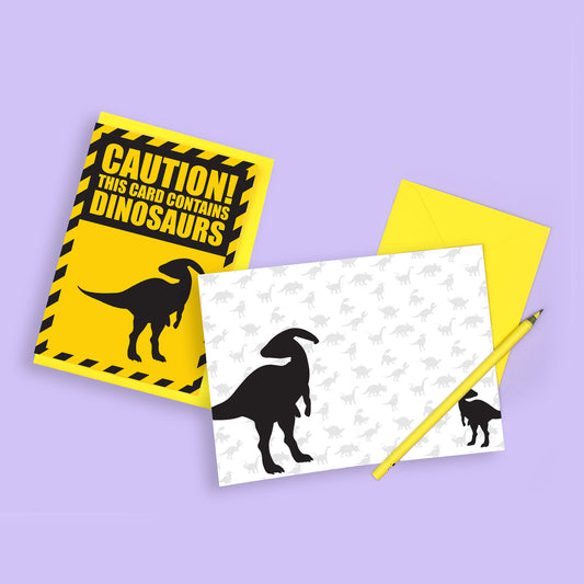 CAUTION! Parasaurolophus Dinosaur Greeting Card