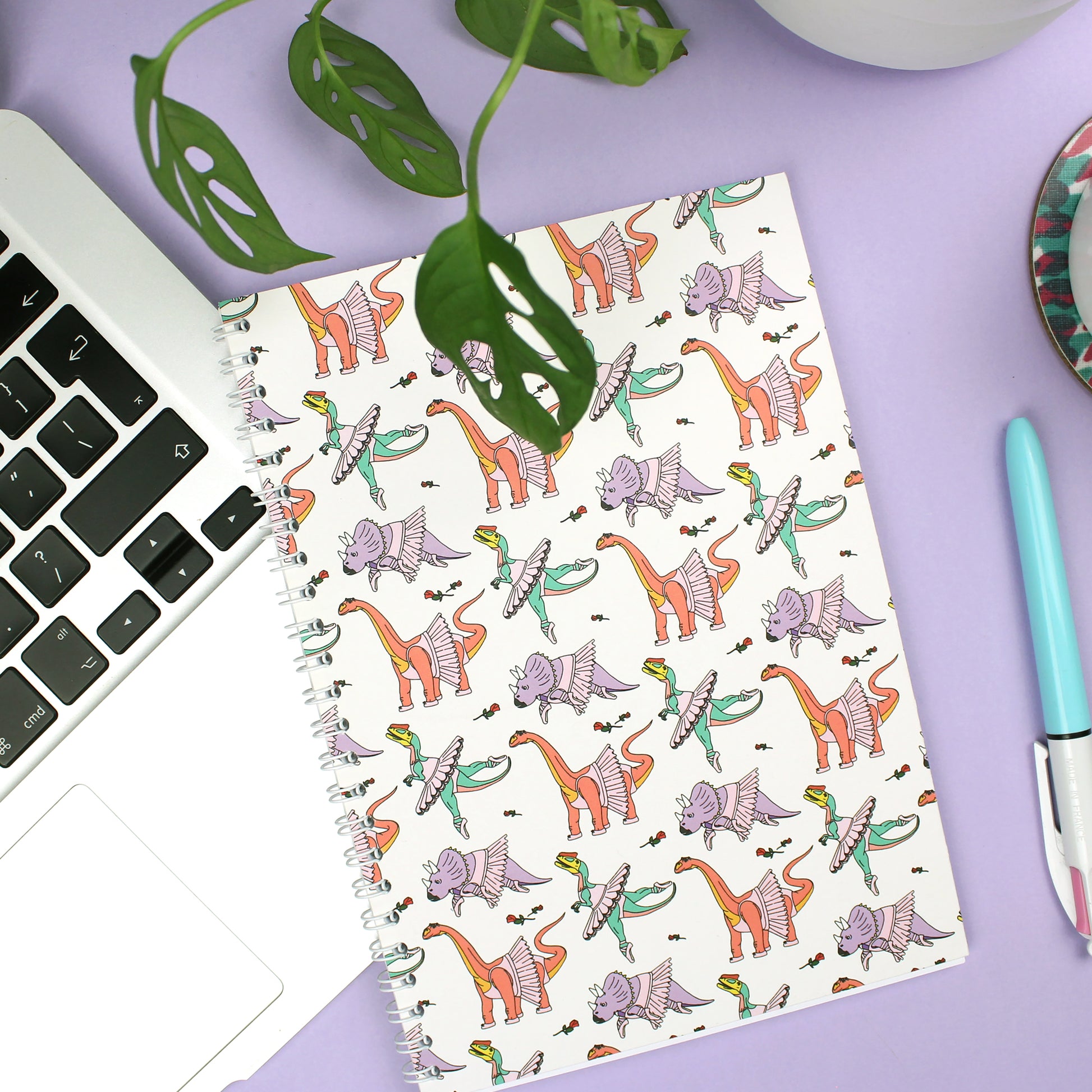 Take your notes and make your mark with this whimsical ballet dinosaur spiral notebook! Whether you’re taking notes in class, sketching a masterpiece, or just doodling around, this notebook is here to help you unleash your creativity.