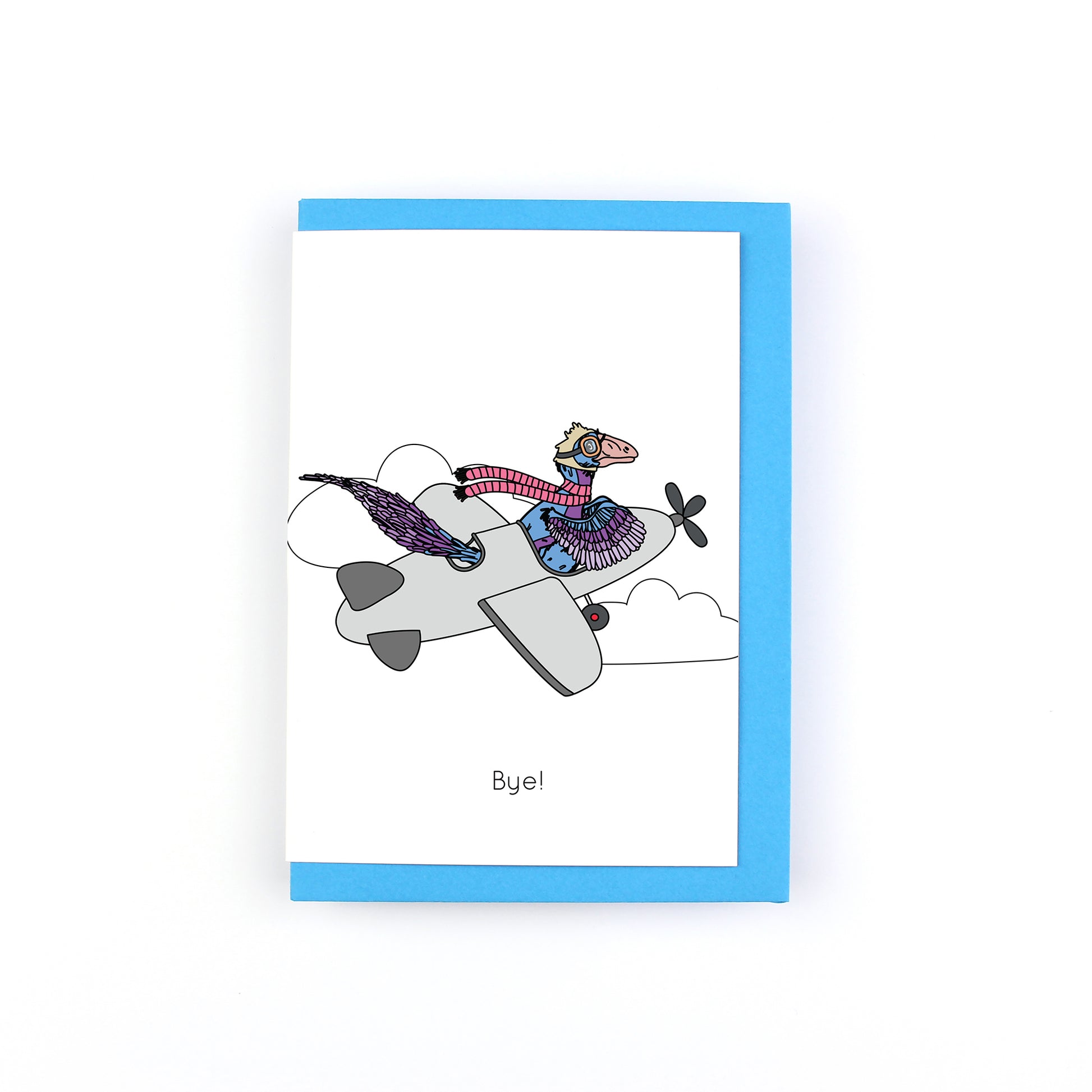 Say a prehistoric goodbye to your friend or colleague with this Bye! Dinosaur Greeting Card. Featuring a dinosaur flying a plane, it's the perfect fun and quirky way to send well wishes.