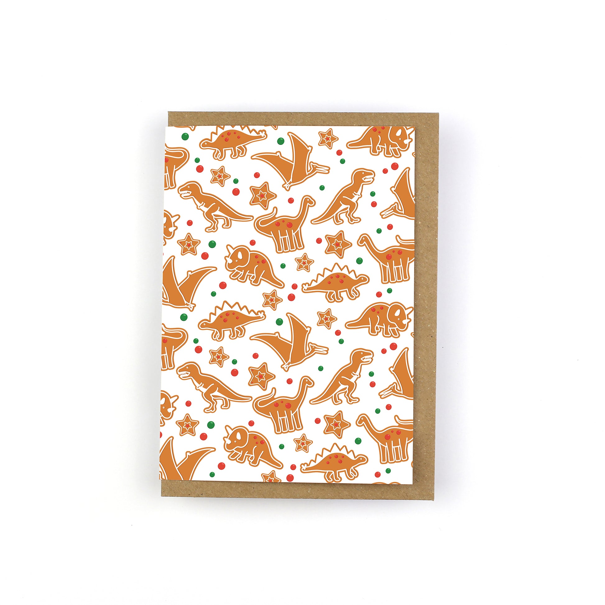Dinosaurs, gingerbread, and Christmas? Bake up some cheer this holiday season with this jolly Gingerbread Dinosaur Christmas Card! It's the perfect way to spread some festive spirit