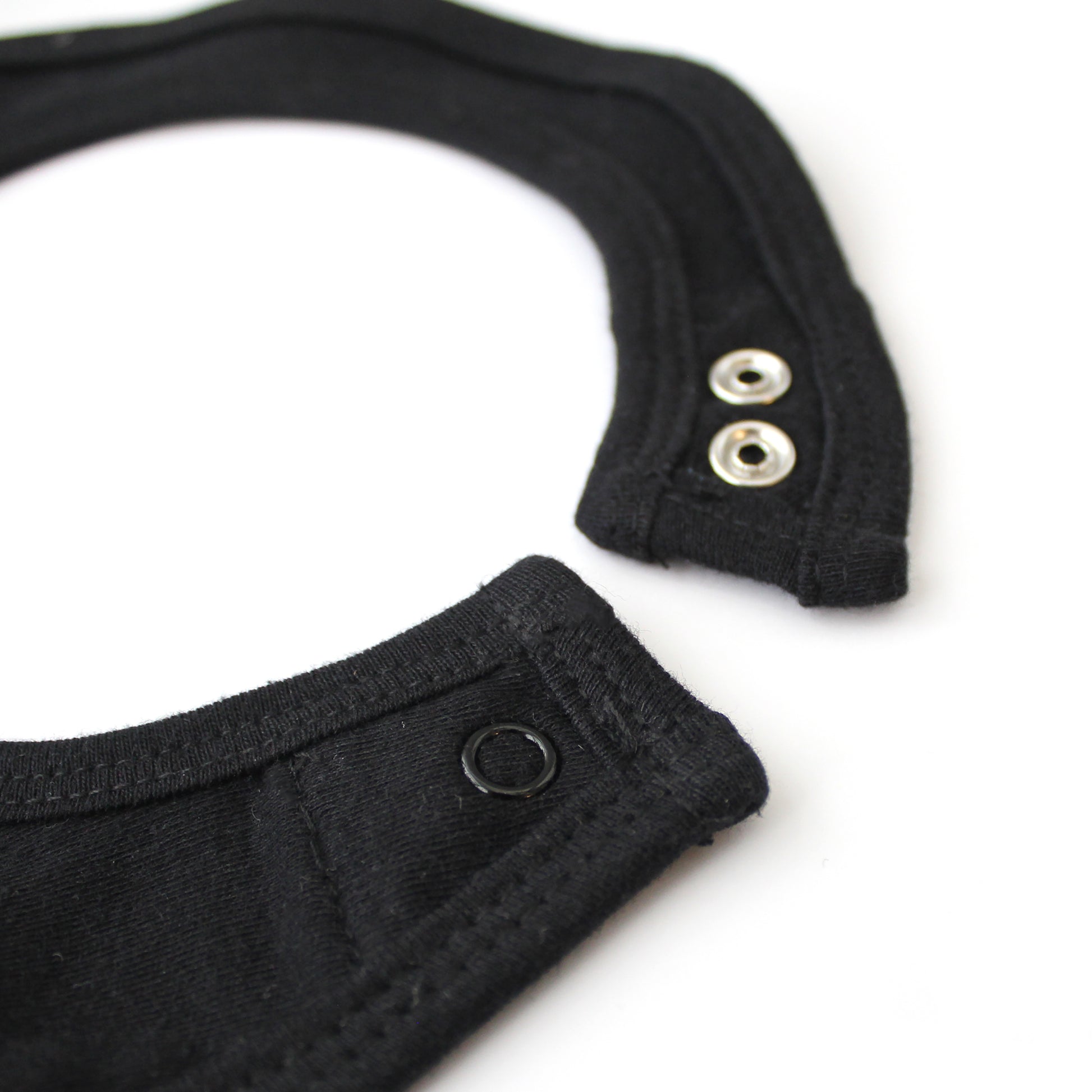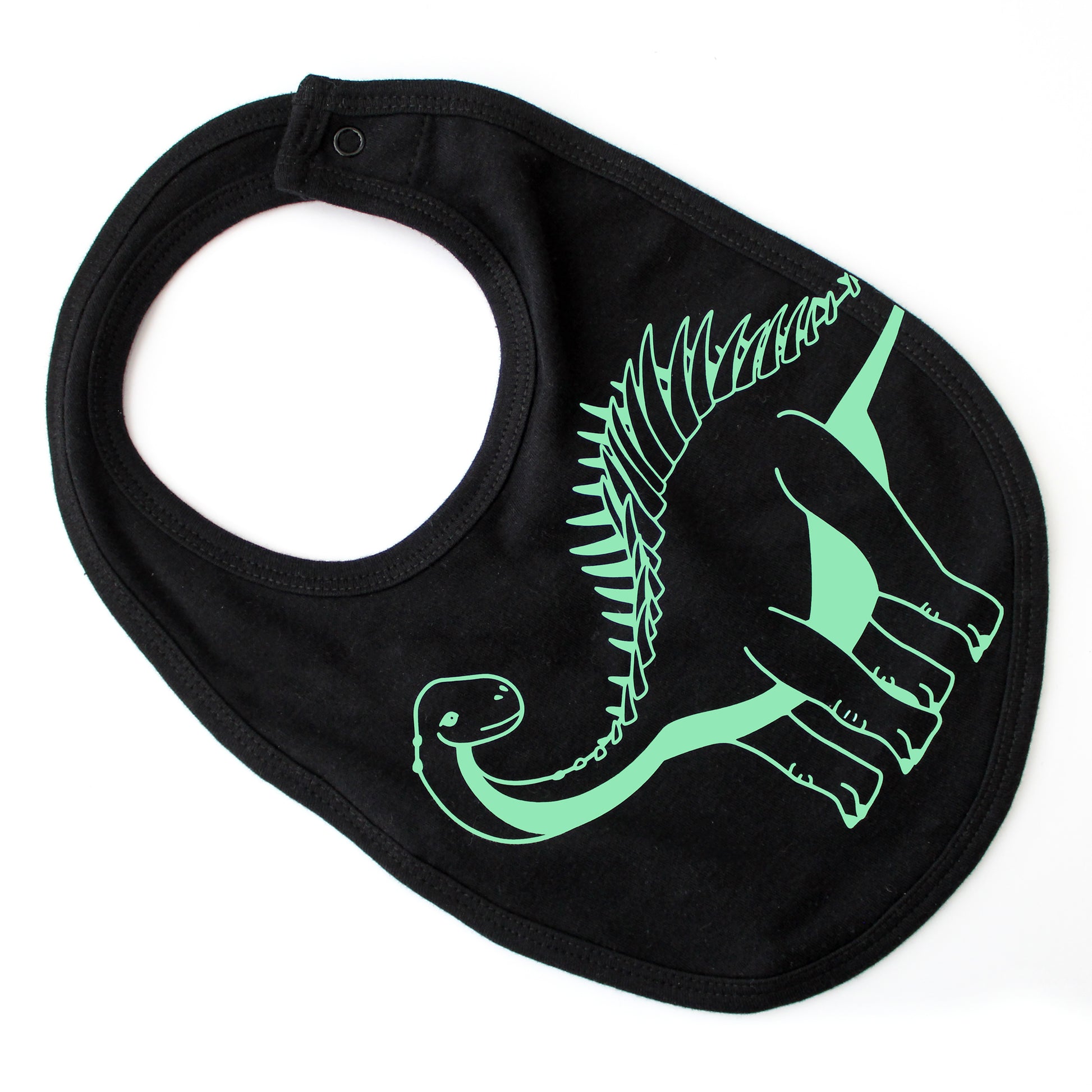 Keep baby looking stylish and their clothes dribble-free with our super fun baby bandana bibs! Each bib is decorated by hand with a vinyl line art dinosaur or swimming reptile and the 'Dinosaurs Doing Stuff' logo on the back. Each design has been drawn by hand and then adapted onto these fun bibs. The front and back of the bibs are black. The bibs are single-layered and feature an adjustable popper back fastening for comfort.