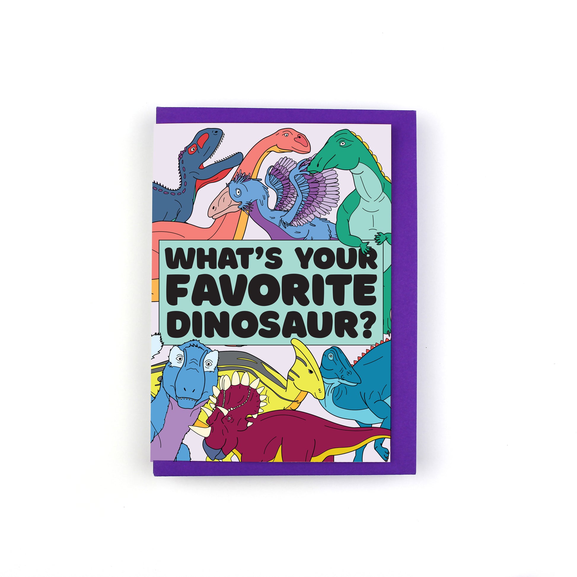 As we get older people stop asking what our favourite dinosaur is. Be the person who asks the important question. This versatile dinosaur card is great for celebrations, birthdays, graduations, new babies or just for anyone who loves dinosaurs.