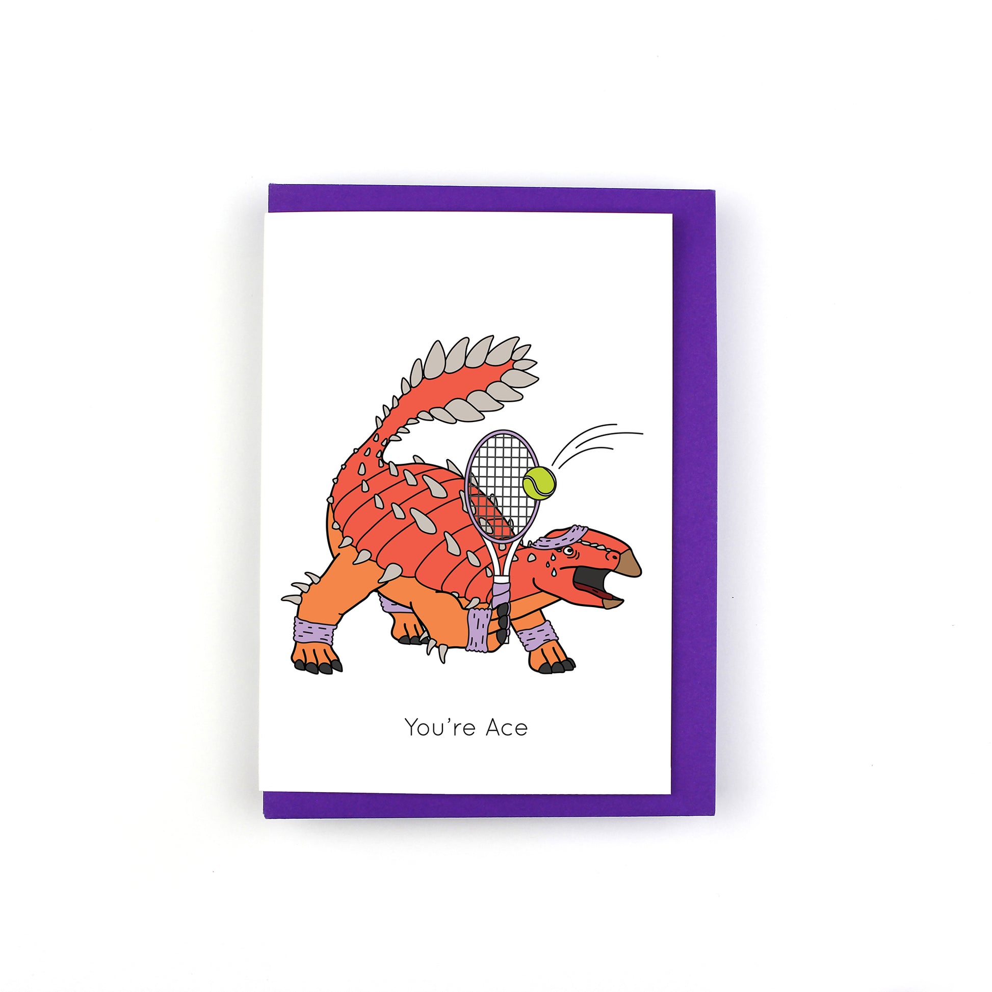 Send your friend a special greeting with this You're Ace Dinosaur Greeting Card! Featuring a fun tennis-playing dino, this punny card is sure to put a smile on their face. It will surely be an "aces" way to show your appreciation.